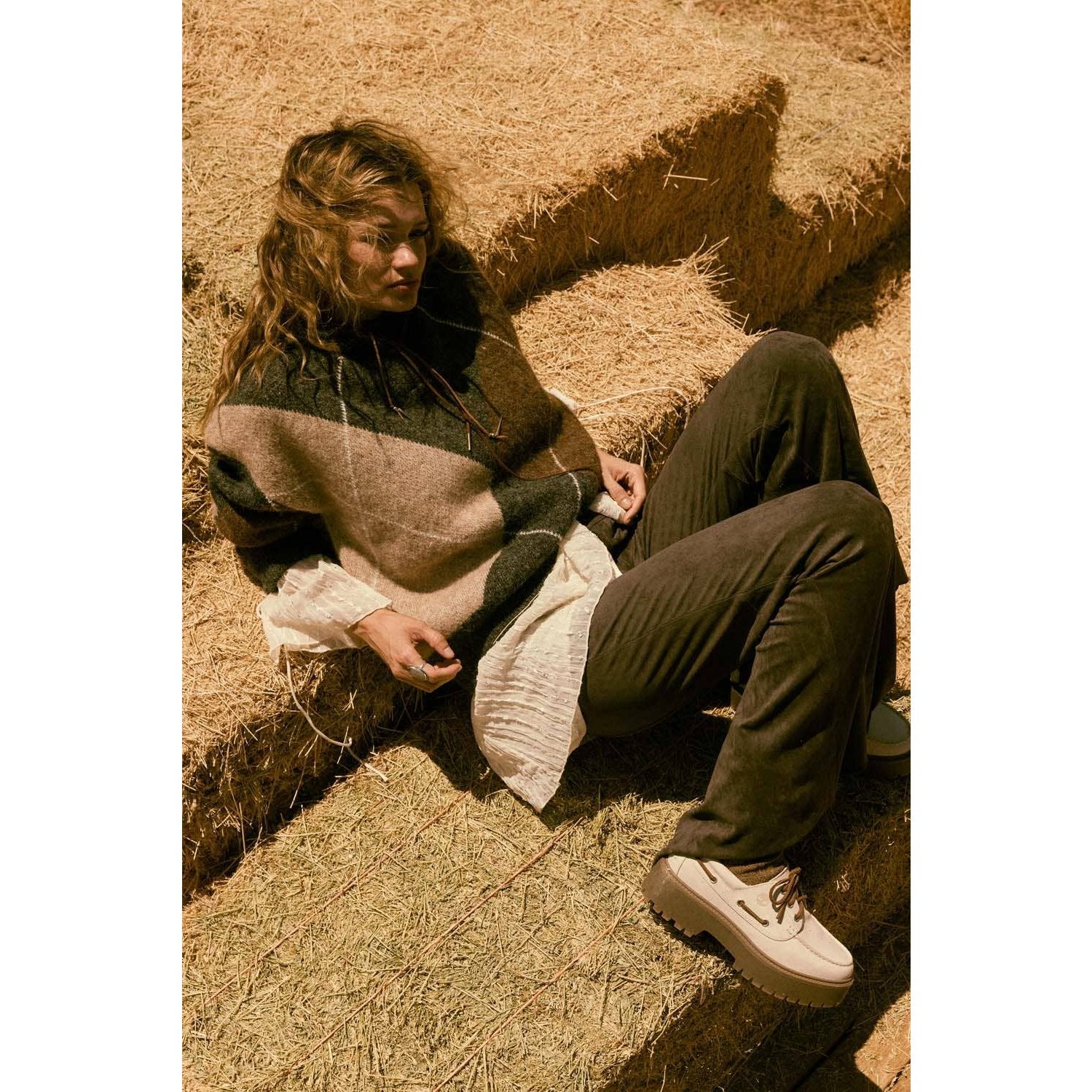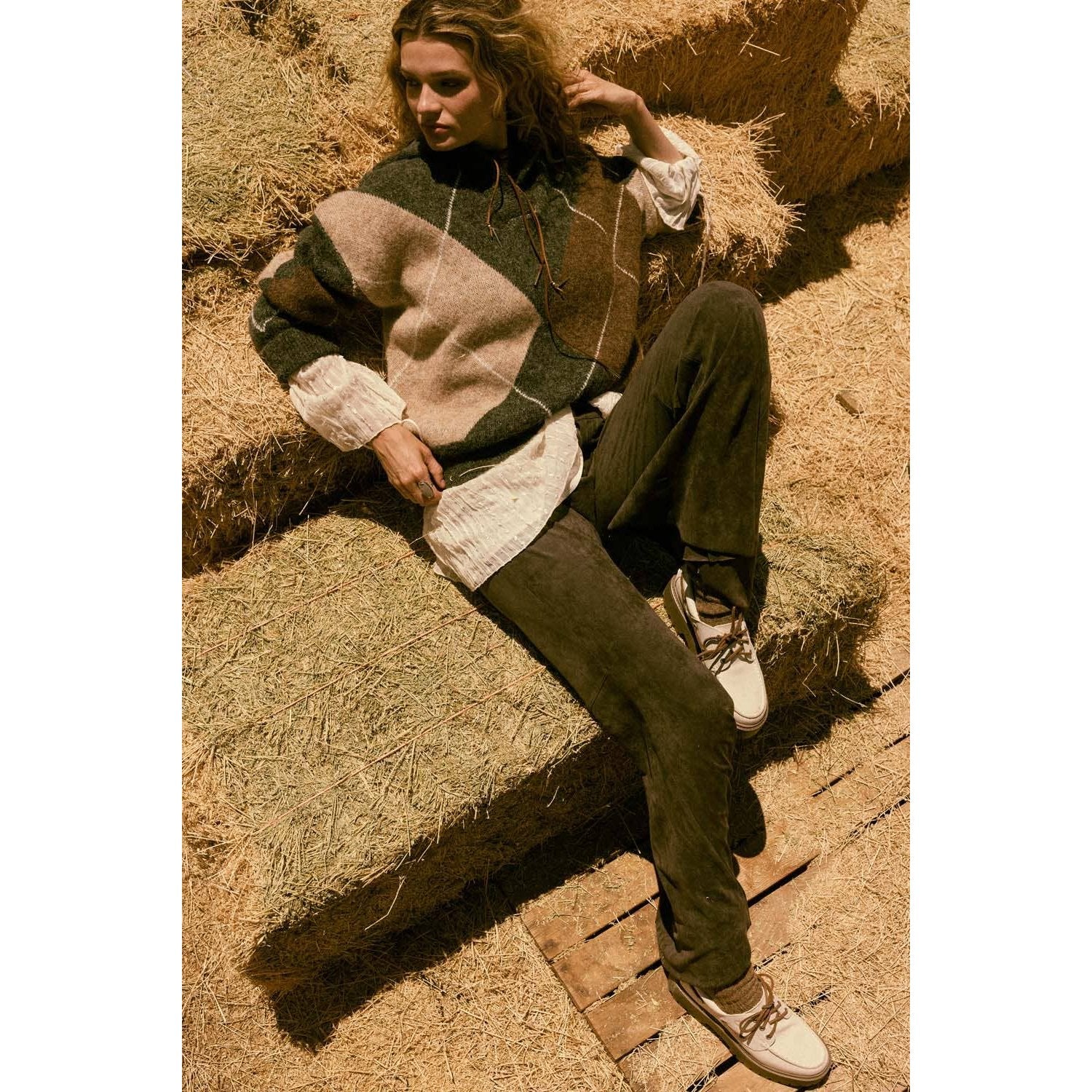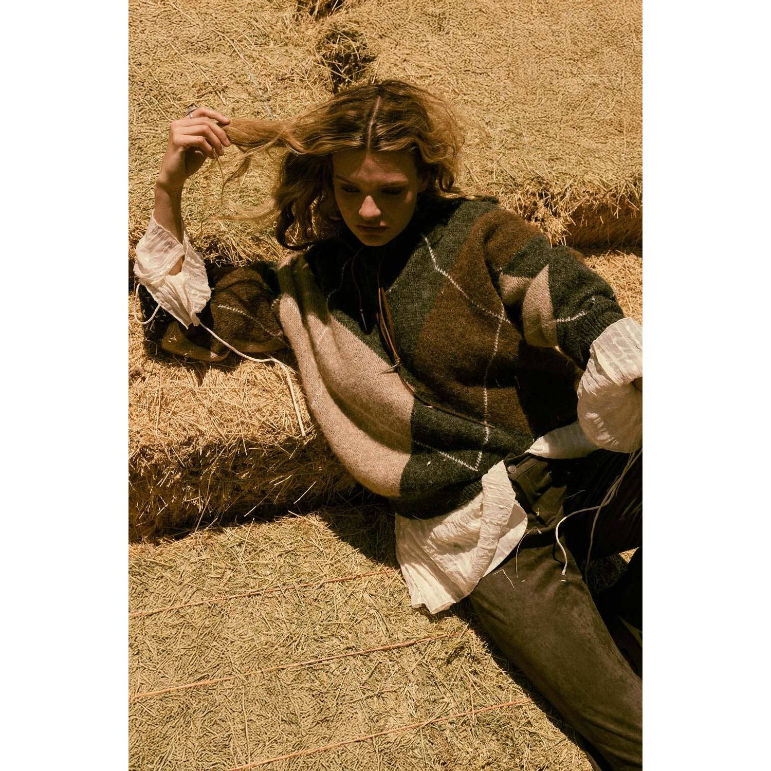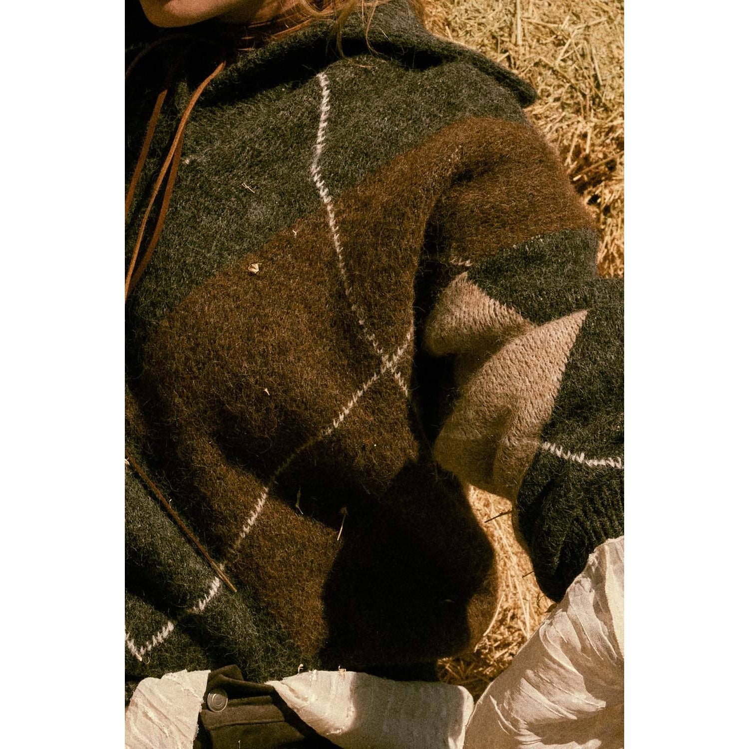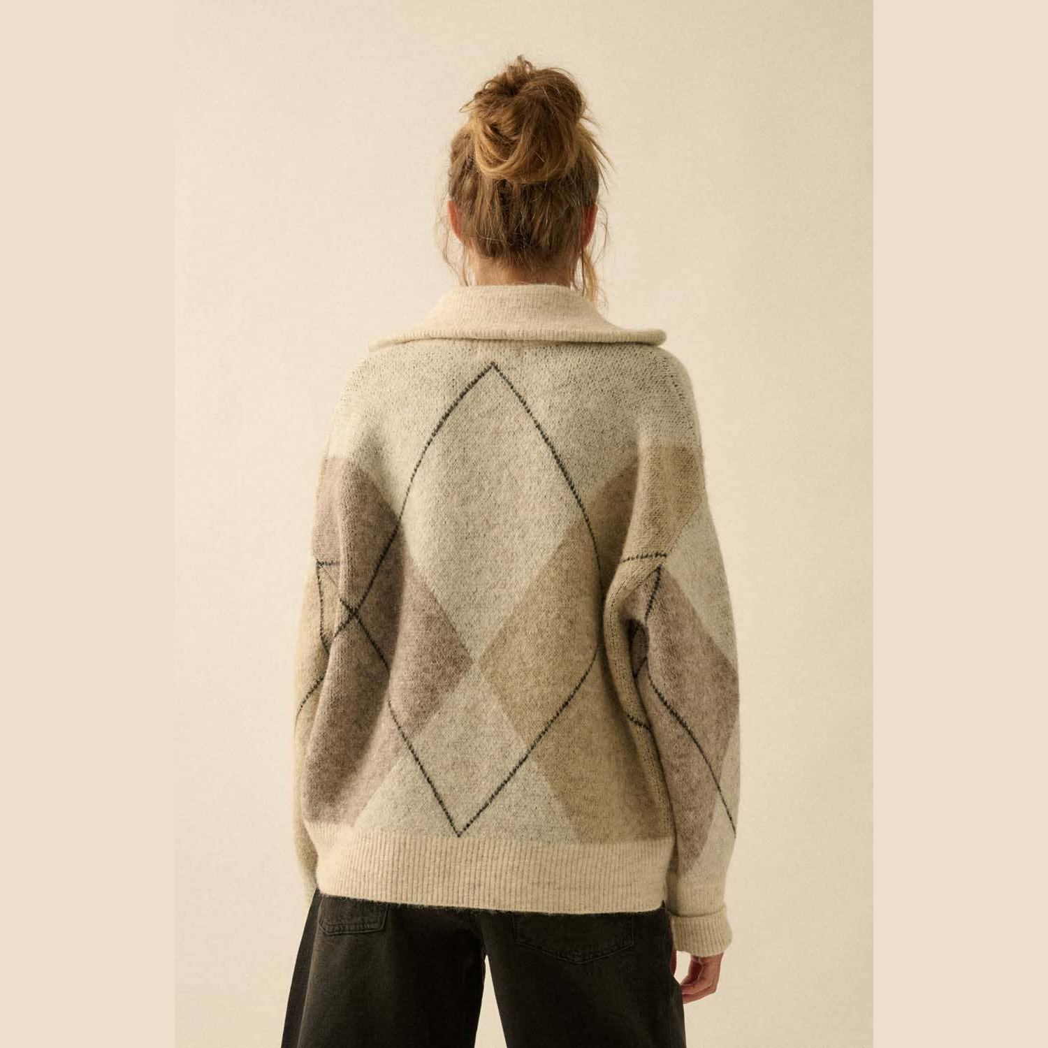 Argyle Plaid Knit Split-Neck Collared Sweater