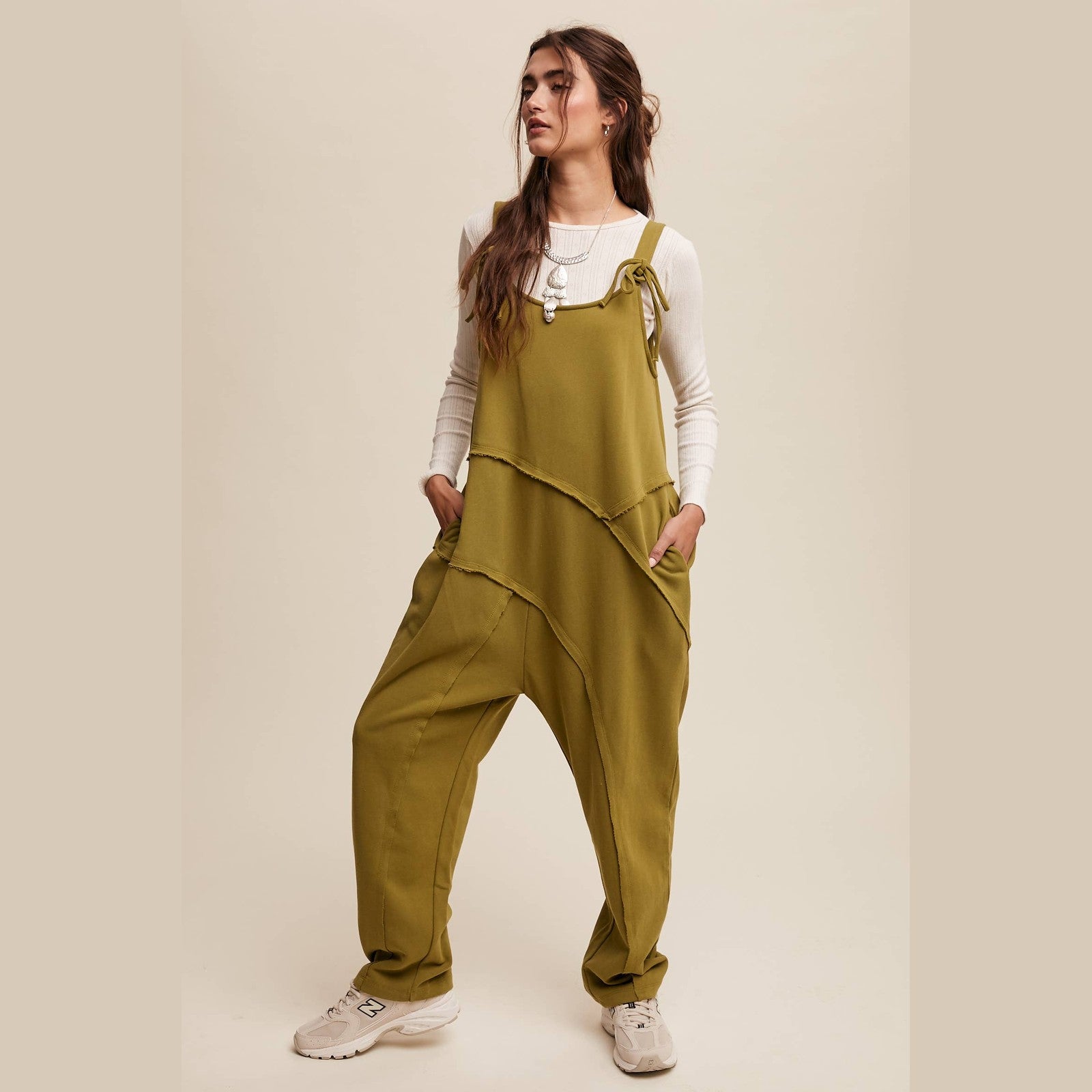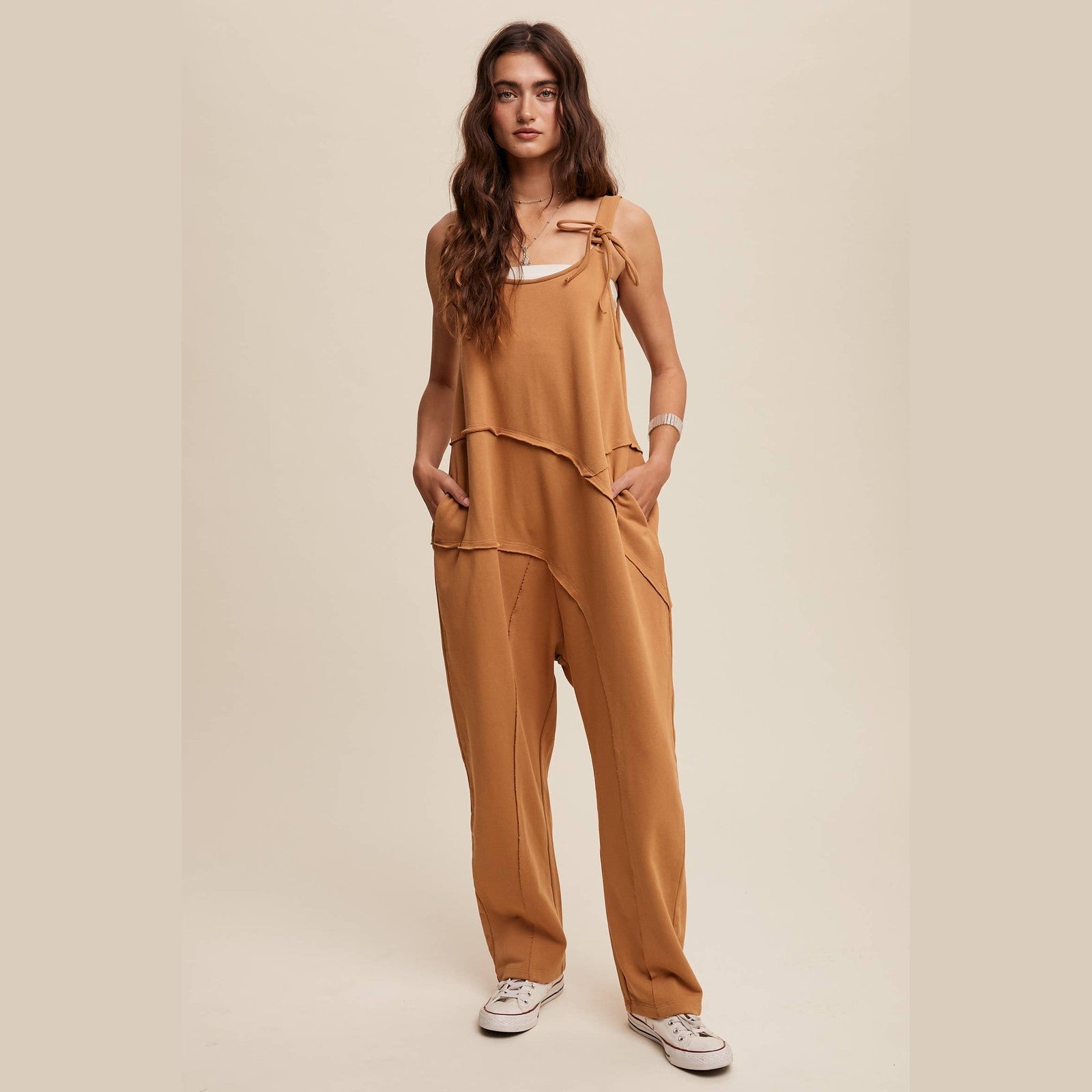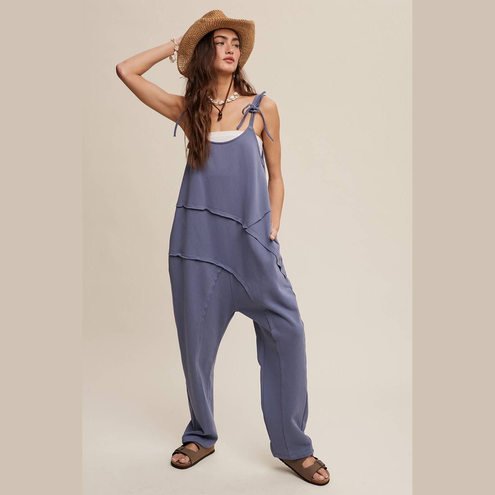 Chill meets chic in this breezy jumpsuit, perfect for layering over tanks or tees for a relaxed, downtown-cool statement.
