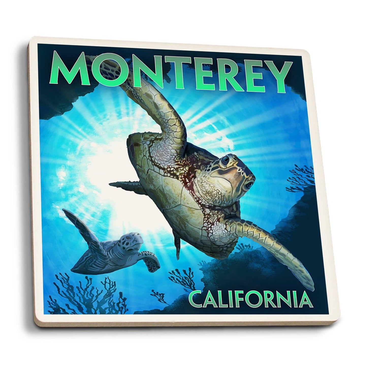 Ceramic Coaster Monterey, California, Sea Turtles Diving 79305