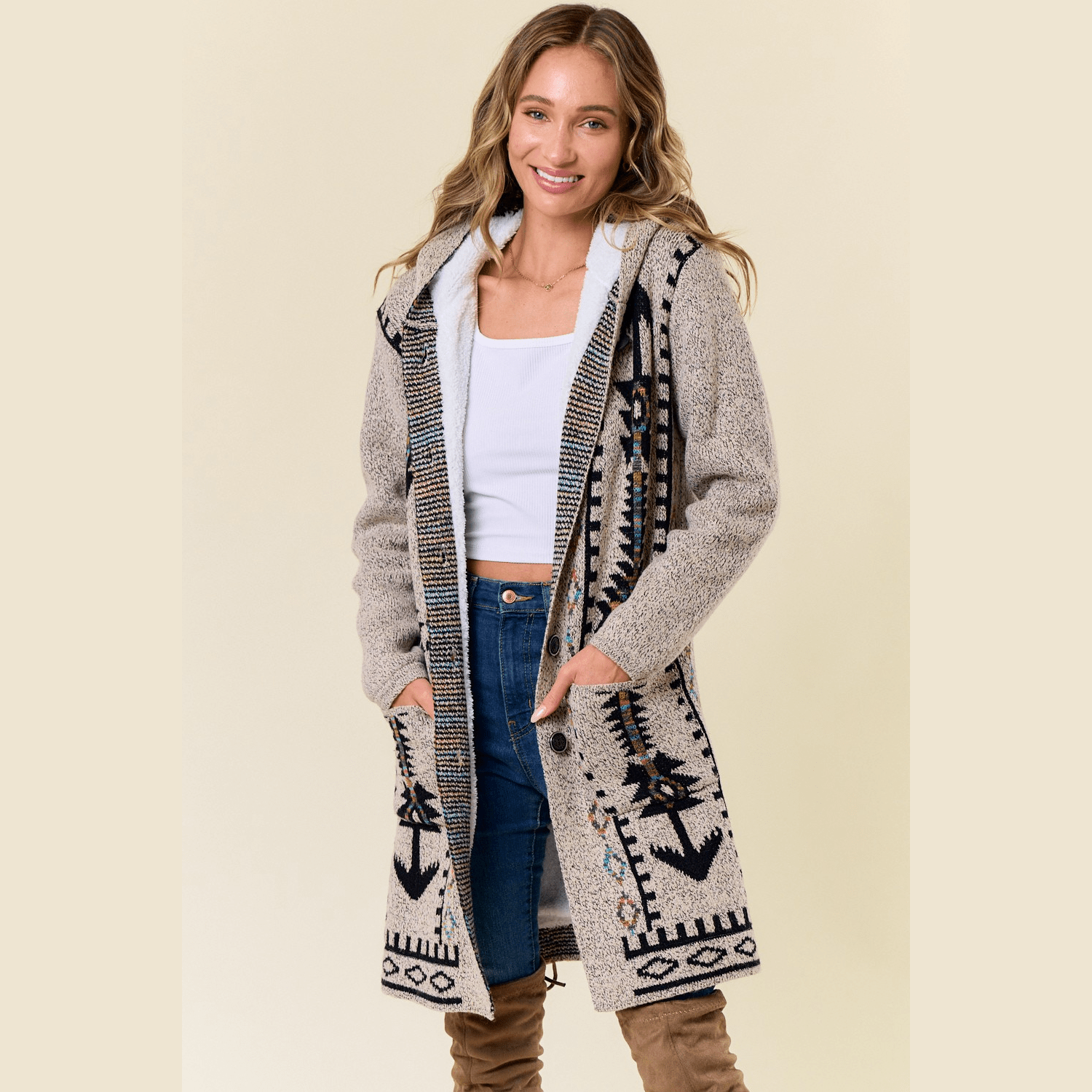 Chenoa Sweater Hooded Long Cardigan w/ Sherpa Lining