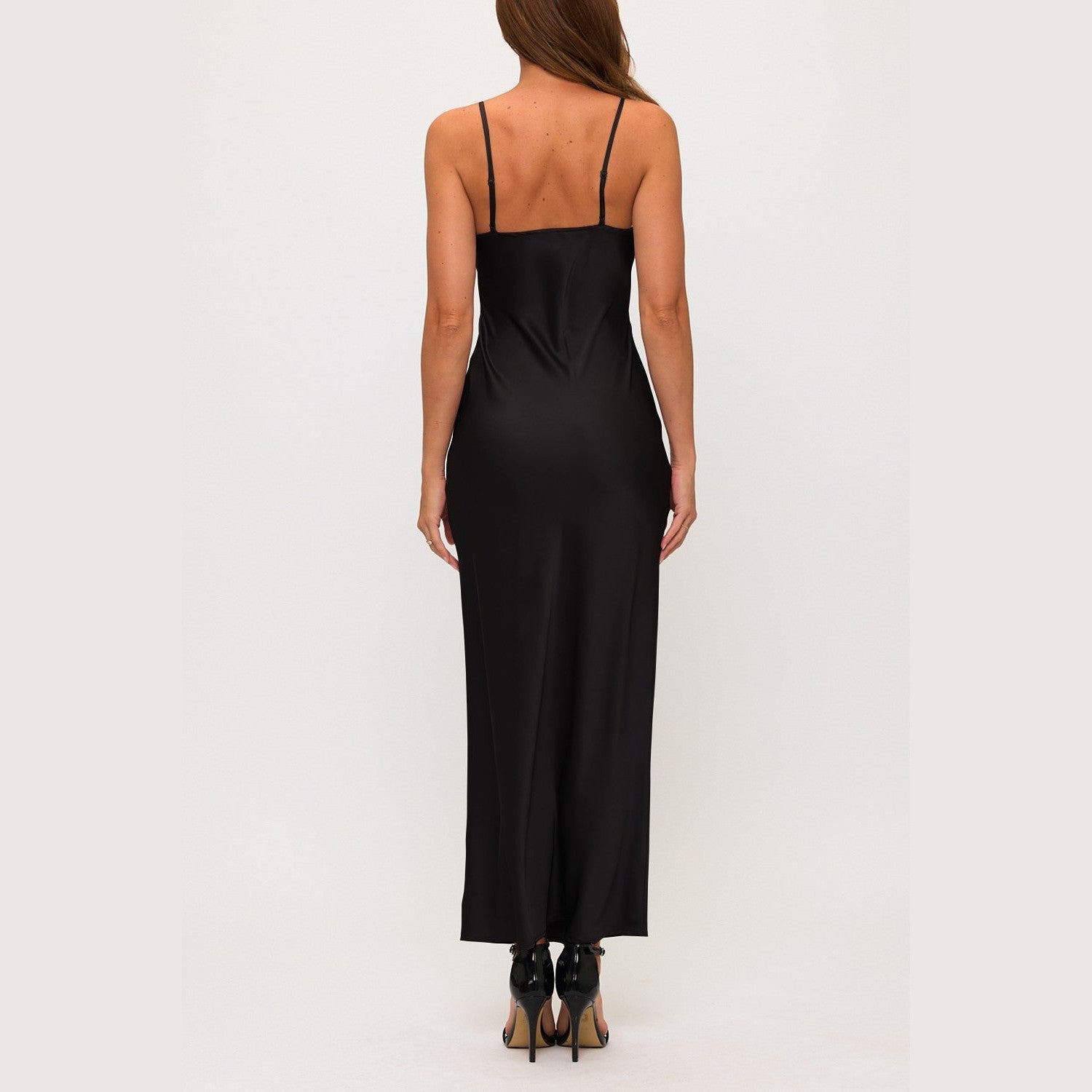 - SATIN - COWL NECKLINE - ADJUSTABLE SHOULDER STRAPS - SLIP MAXI DRESS