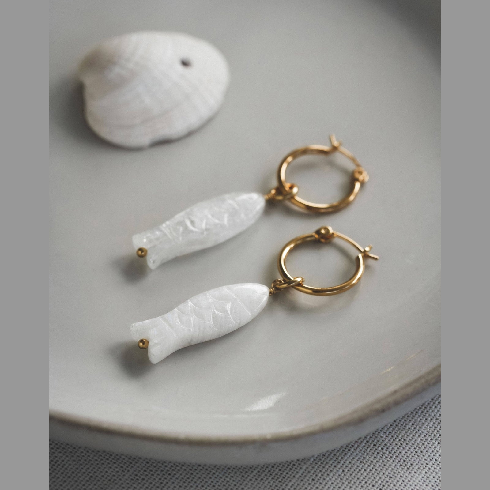 Bring a bit of La Dolce Vita to your assortment with La Pesca Bella—a playful yet polished charm hoop earring featuring a carved moonstone fish. Rich in symbolism and coastal charm, moonstone is known for its calming energy and luminous glow, adding a meaningful touch customers will love.