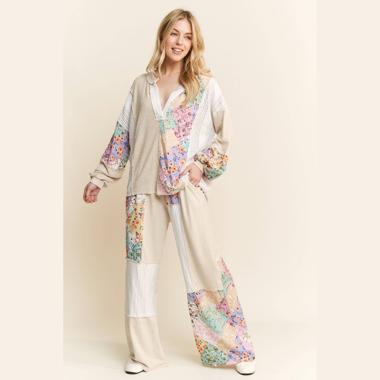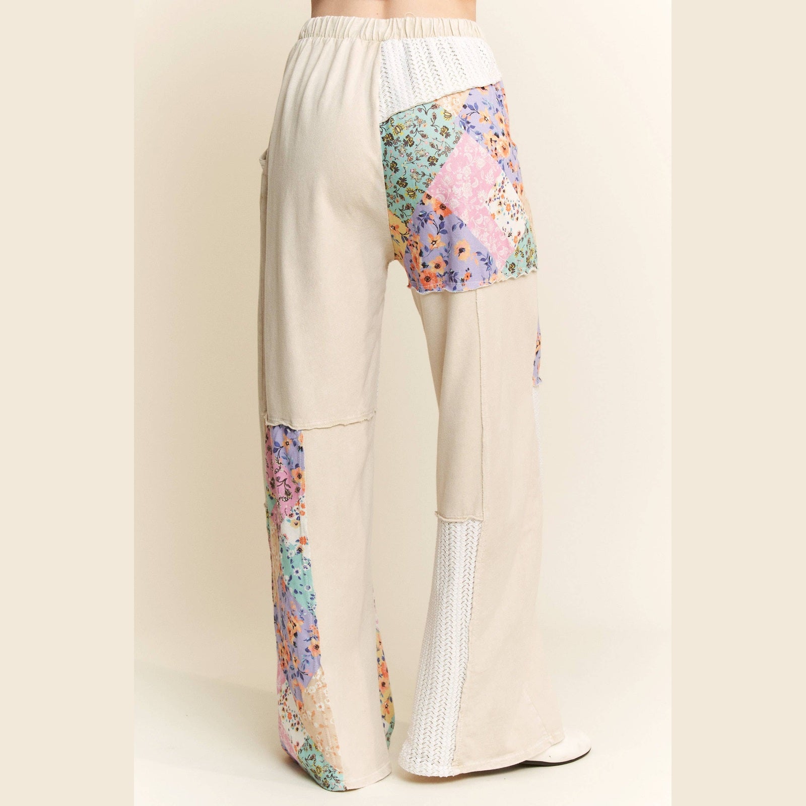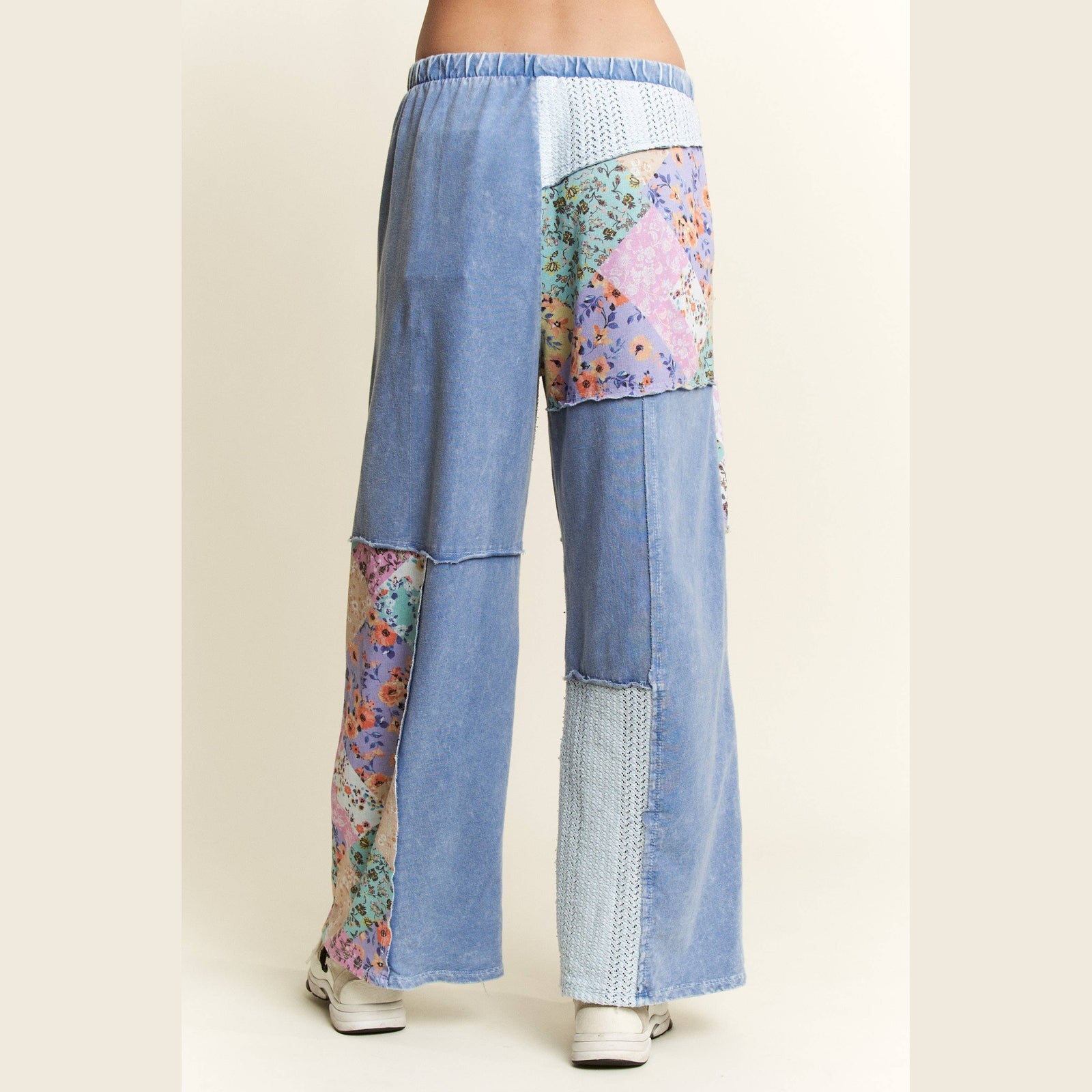 Mineral Washed Floral WaveKnit Jacquard Boho Wide Leg Pants