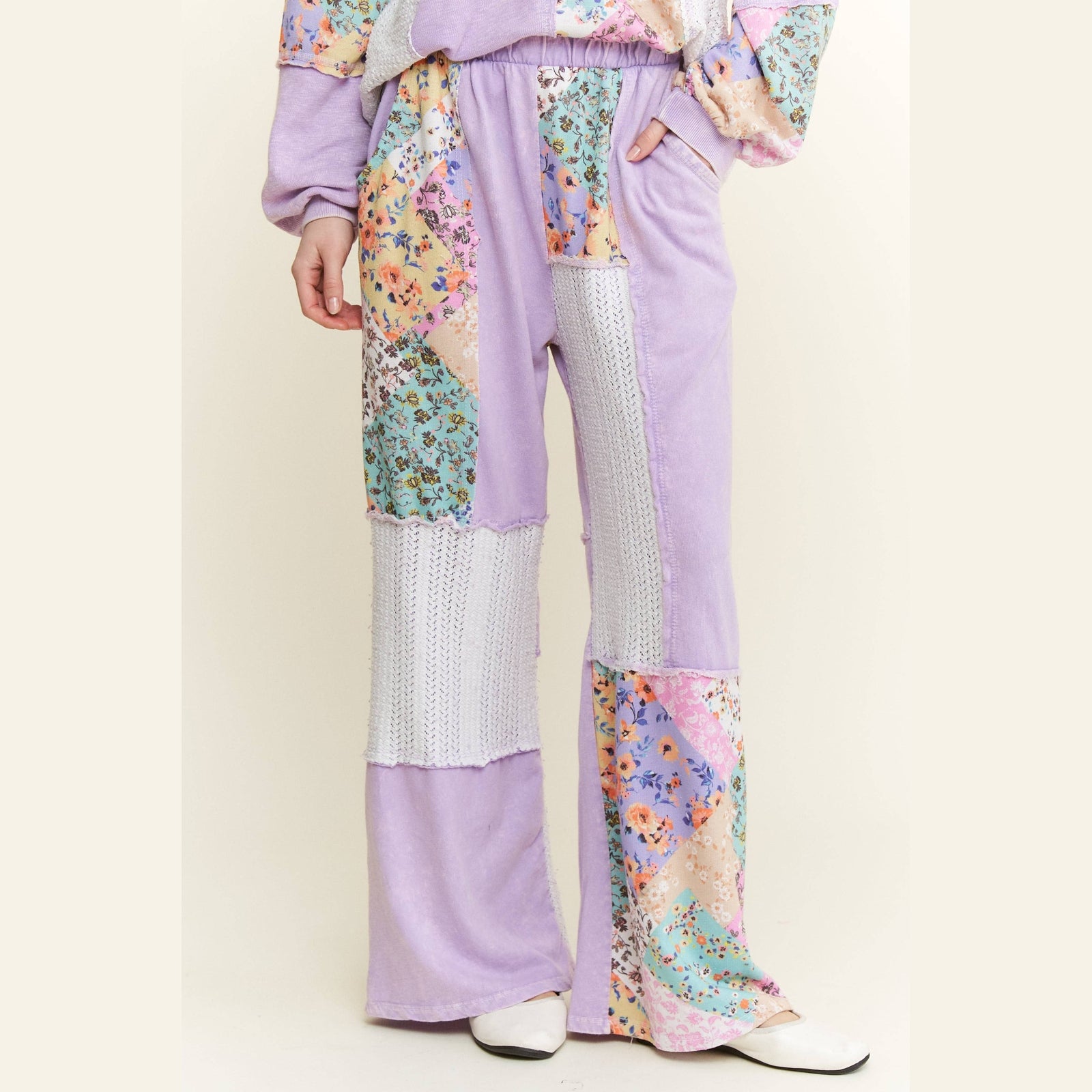 Mineral Washed Floral Wave Knit Jacquard Boho Pants