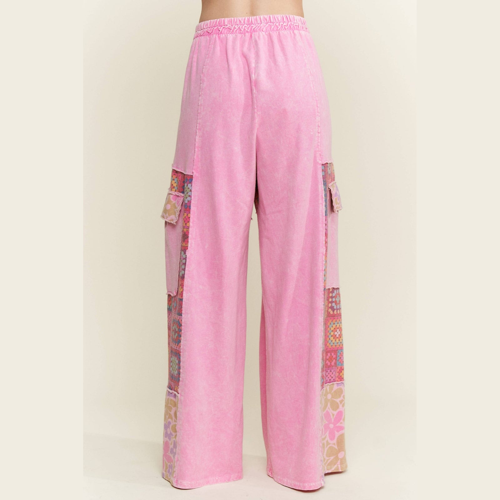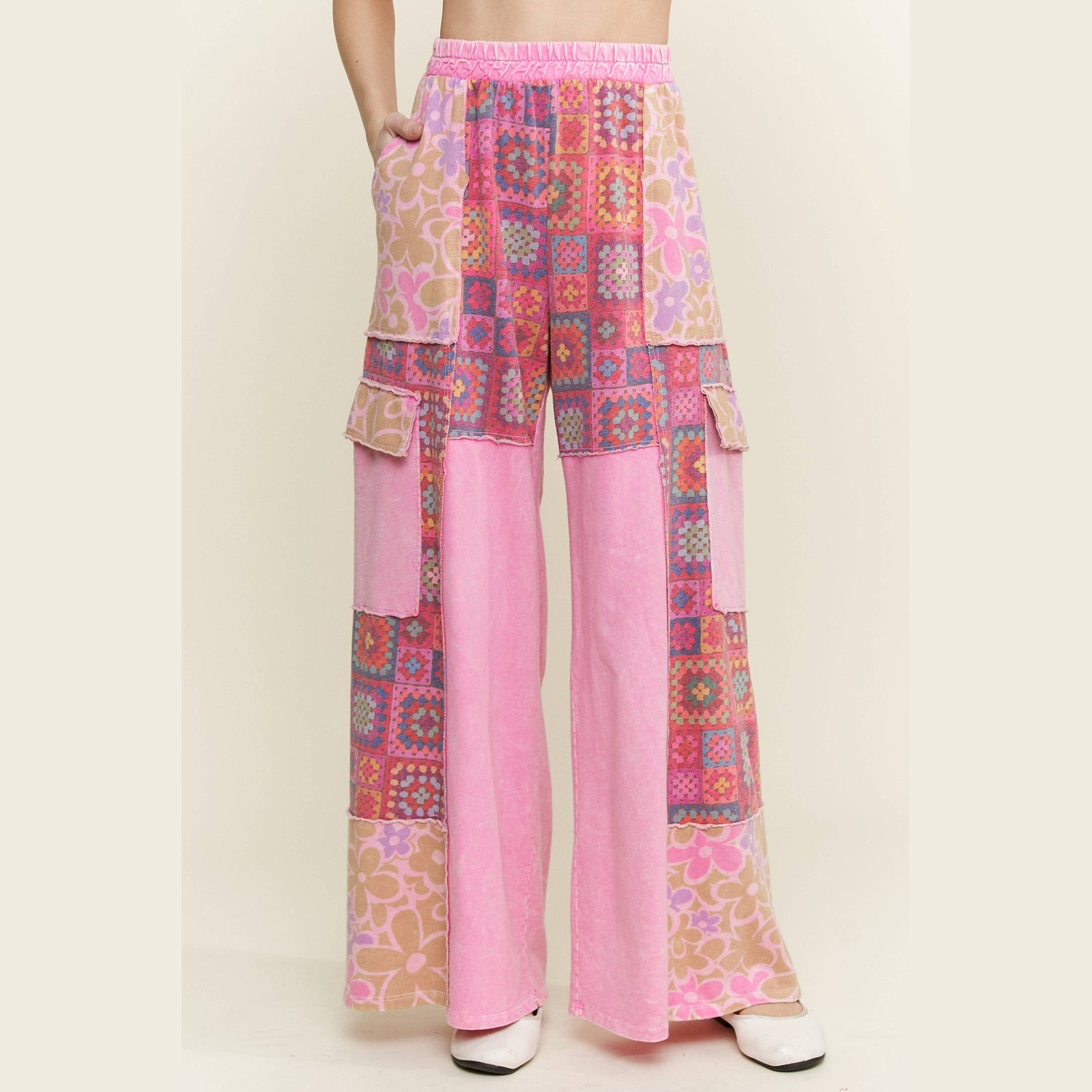 Mineral Wash Crochet Floral Printed Pants * Actual colors may vary due to screens displaying colors different. *