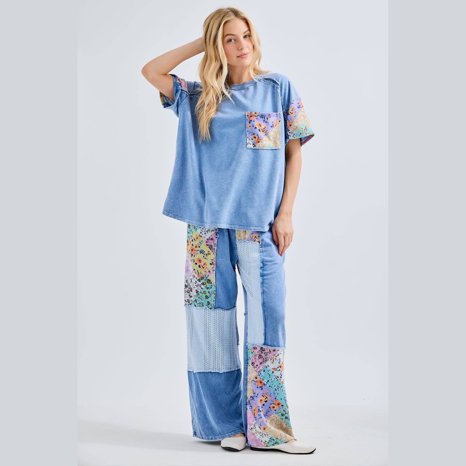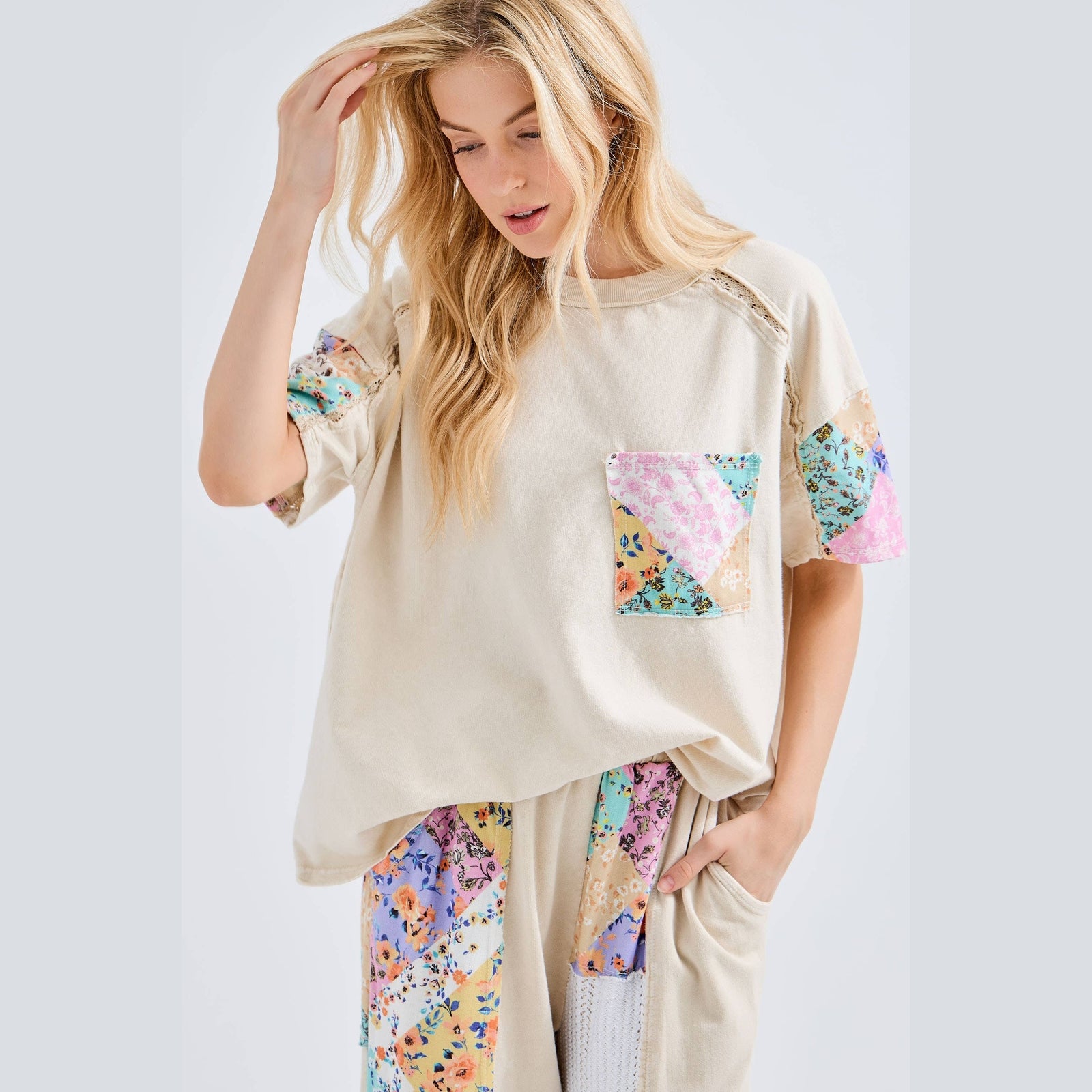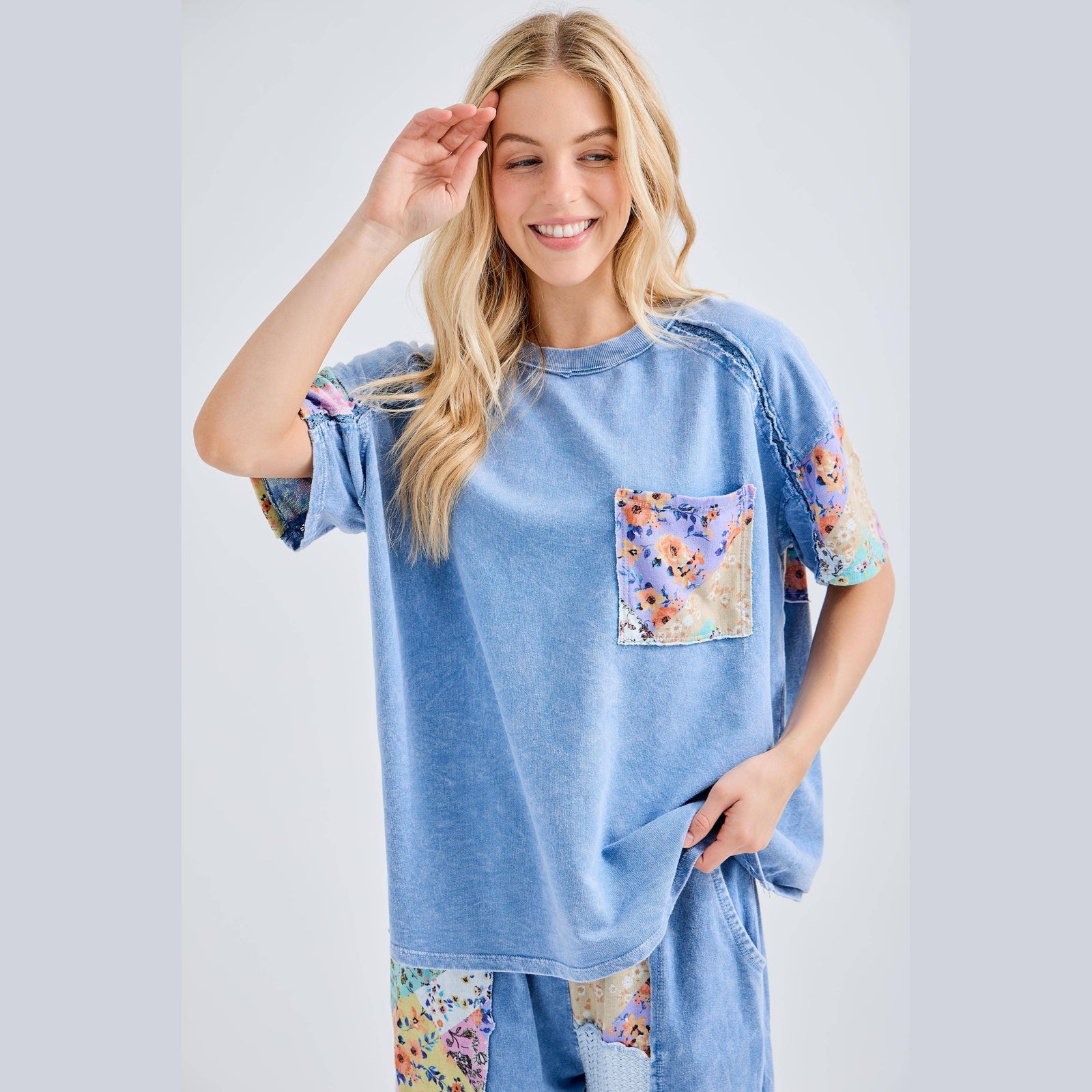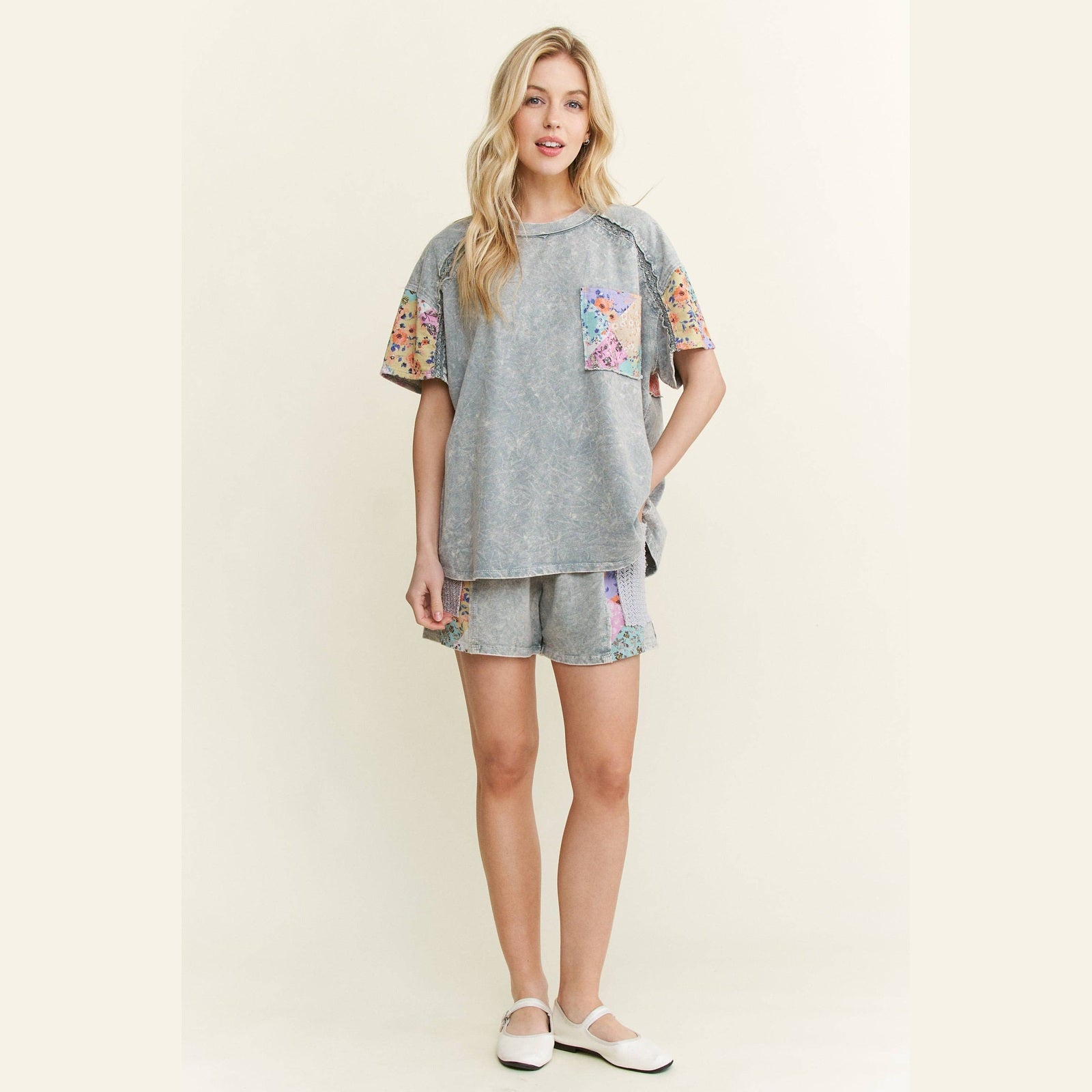Mineral Washed Flower Patch Pocket Top