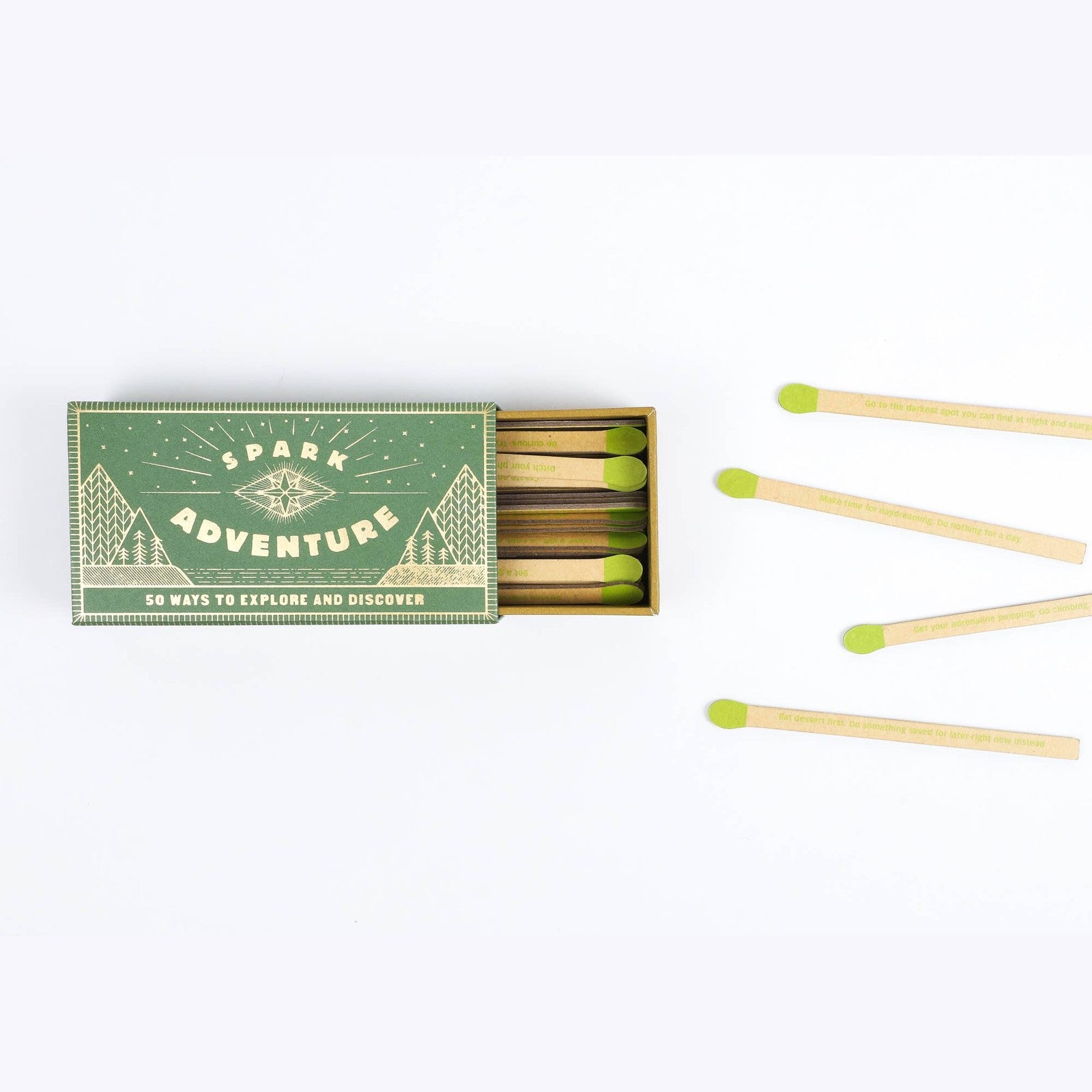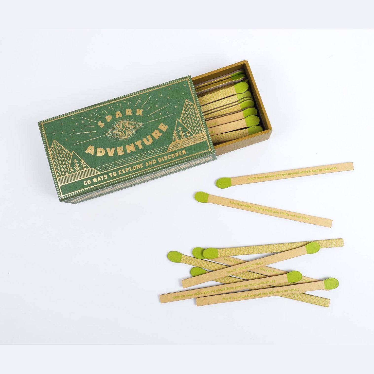 Adventure in a box: accessible prompts in a pick-me-up package that will genuinely spark new experiences and discoveries. A novel gift, this cute faux matchbox box of inspiring prompts is sure to spark exploration and discovery on any journey-whether traveling around the world or just around the block. Includes 50 faux matchsticks with printed prompts.