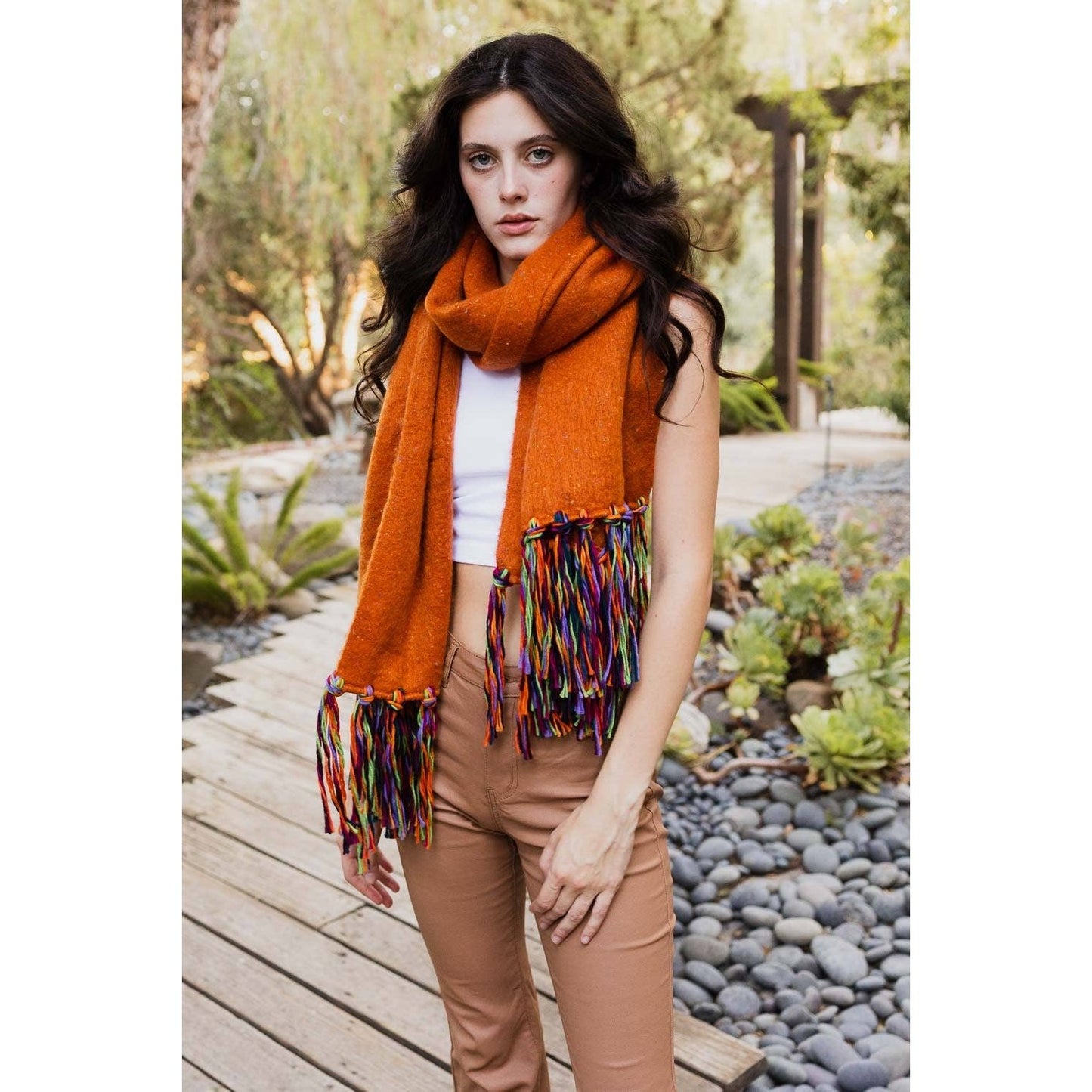 Speckle Frayed Border Bohemian Scarf