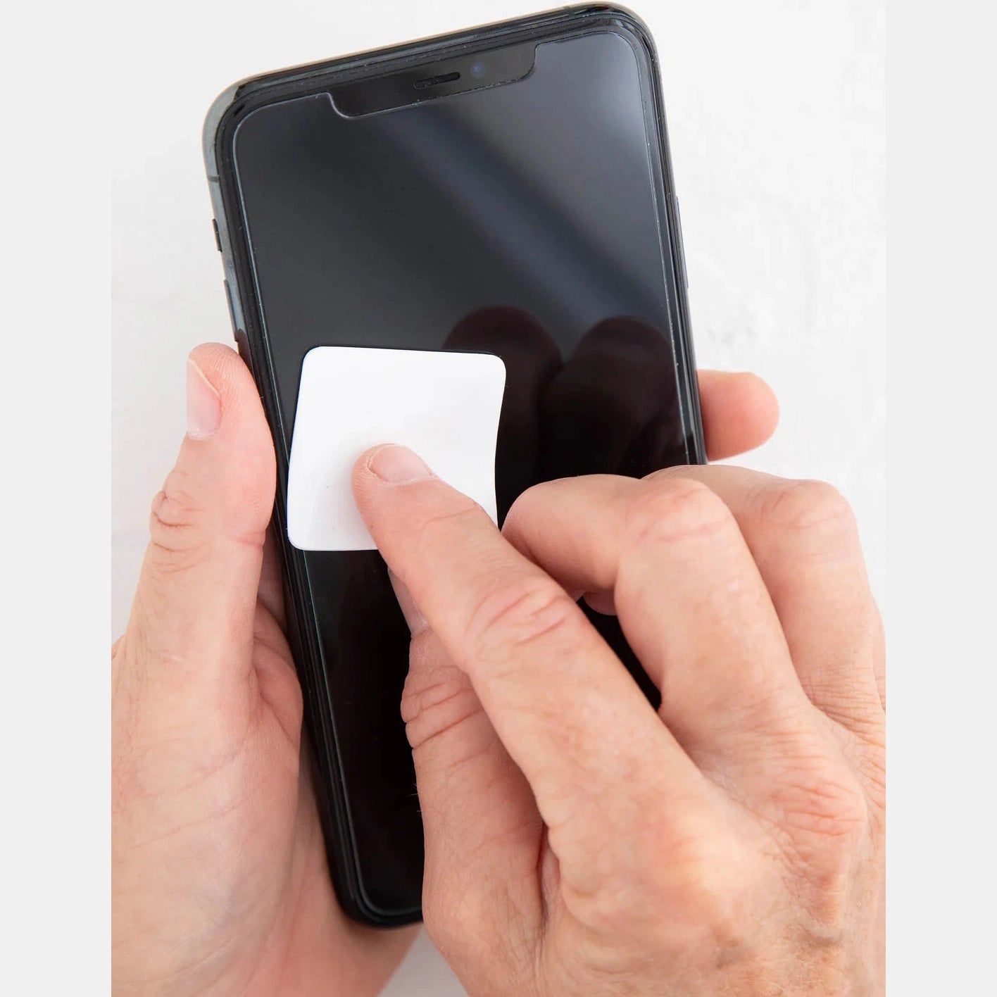 Cleans smudges & dust from your phone, tablet or camera! Just stick it 'em to the back of your device so you can conveniently use them again & again!