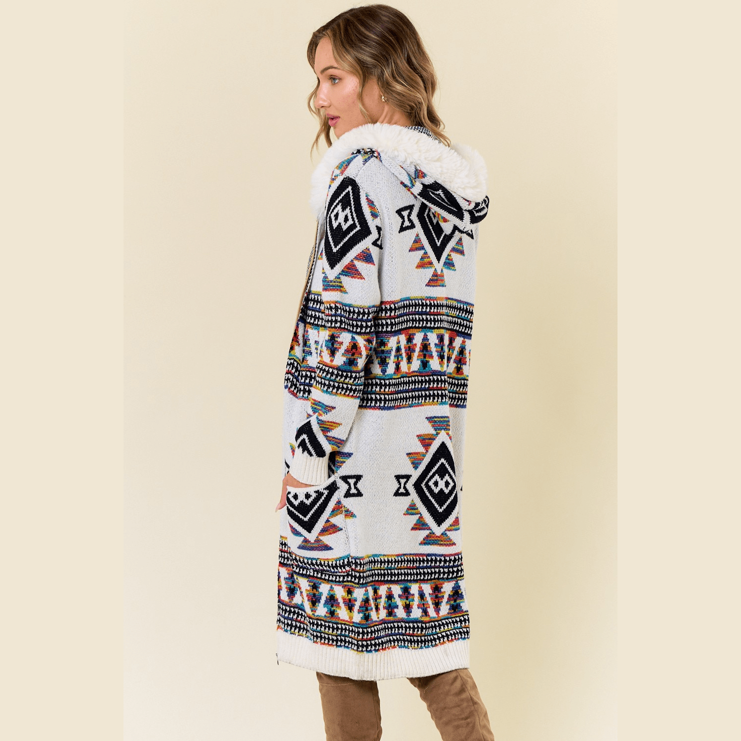 Tiva Aztec Sweater Hooded Fur Cardigan