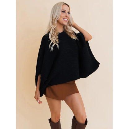 Discover the perfect blend of comfort and style with our Minimalist Crew Neck Poncho Sweater. Made from premium ribbed knit, this chic poncho features elegant bell sleeves for that extra flair. Your go-to for any occasion, it's available in four stunning colors—Black, Ecru, Ivory, and Mauve. Elevate your style game today with this versatile wardrobe essential. 100% Polyester One Size Fits Most XS-XL / 0-16 / 32"- 42"
